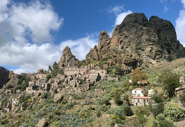 Pentedattilo, situato a pochi chilometri dalla costa ionica calabrese, è un piccolo borgo arroccato su una montagna, famoso per la sua forma unica che ricorda una mano con cinque dita. Questo dettaglio affascinante, da cui deriva il nome del villaggio (dal greco "pente" = cinque e "daktylos" = dita), è solo l’inizio della sua storia millenaria, che affonda le radici nell'antichità.